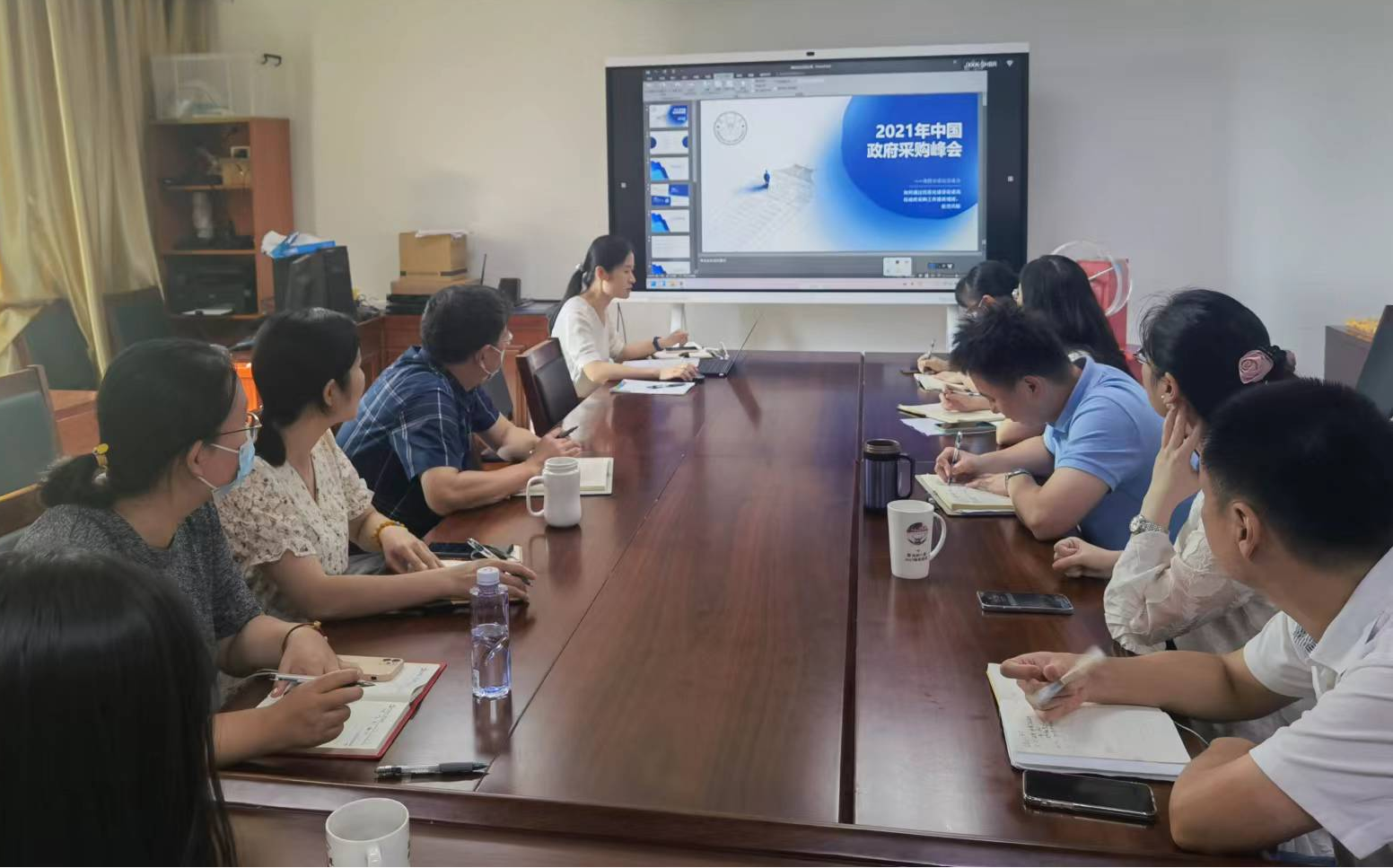 7月25日,资产与后勤事务管理处、招投标中心组织专题学习,谭欣晨、陈心怡、林晓琴就本次参会情况进行了分享。大家一致表示,在我国“碳达峰”“碳中和”的战略目标下,政府绿色采购成为调控宏观经济运行、保护环境的一项重要手段,在今后工作中,要充分发挥政府采购示范效应,引领全社会进一步增强低碳消费和低碳生产的理念。