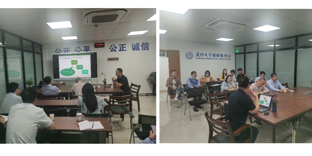 开标评标业务能力是招投标中心工作的重要组成部分,2022年11月24日,中心邀请厦门市政府采购协会副会长兼秘书长孙东涛作《开标评标相关政策及实务操作》专题培训讲座,旨在提升中心工作人员依法依规组织开标评标业务综合能力,资产后勤处、附属翔安医院相关人员,学校政府采购代理机构库工作人员代表和中心全体人员参加培训。