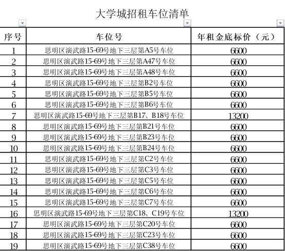 [置顶]厦门大学大学城和西北村地下车位招租公告